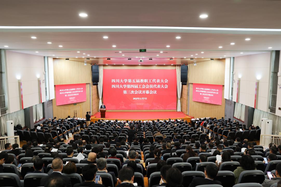 11月7日,四川大学第五届教职工代表大会、第四届工会会员代表大会第三次会议在望江校区笃行楼召开。本次会议的主题是:同心擘画“十五五”发展新蓝图,奋力谱写强国建设川大新篇章。校党委书记甘霖出席会议并讲话。全体在校校领导,校“两委”委员,部分省部级老领导和刚离任的校领导,院士、杰出教授等高层次人才代表,全国及省级人大代表、政协委员,各民主党派、统战团体负责人,“双代会”正式代表、列席代表等参加会议。党委副书记刘晓虎主持会议。