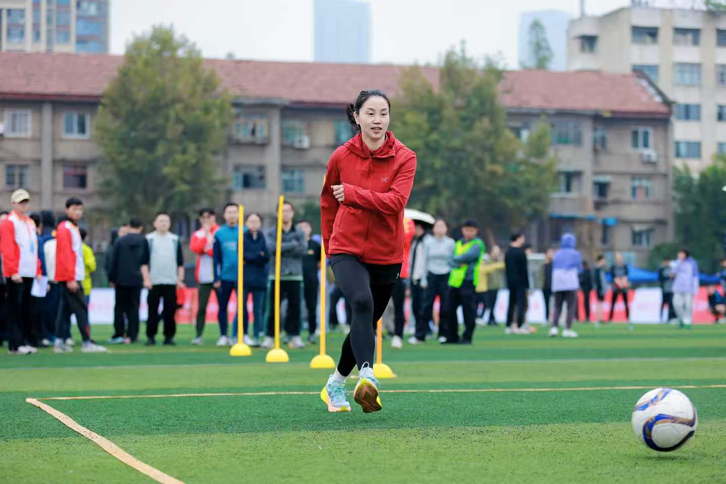 今年的教职工运动会延续了丰富多元的赛事设置,涵盖男女 100 米、跳绳(双摇跳)、跳远、立定跳远、铅球和实心球等个人竞技项目,跳绳(长绳)、4×100 米接力、12×60 米男女混合迎面接力等团体竞技项目,以及抛球入筐、绕杆踢球射门等团体趣味项目,兼顾竞技性与趣味性,为教职工提供了参与和挑战的广阔舞台。并把“乐跑回家”比赛成绩将作为个人单项成绩(前16名)计入各工会分会运动会总成绩中。